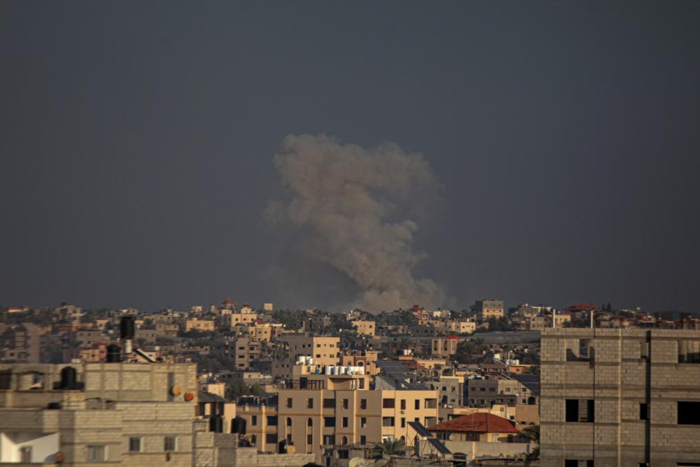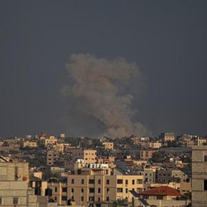 12月9日,濃煙從加沙地帶南部城市汗尤尼斯一處被炸地點升起。新華社發(里澤克·阿卜杜勒賈瓦德攝)
