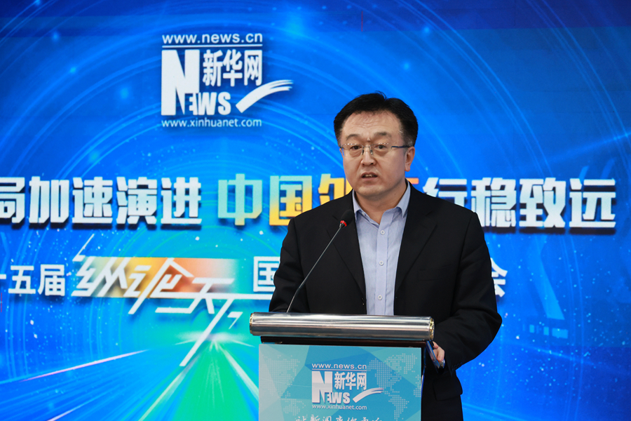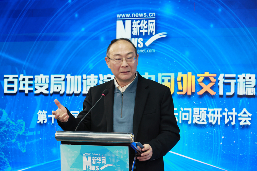 1月2日,新华网第十五届“纵论天下”国际问题研讨会在北京新华网总部举办。图为外交学院院长、中国国际关系学会副会长王帆在进行下半场主题演讲。新华网 杨霁昕 摄
