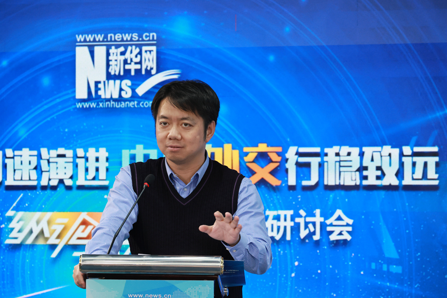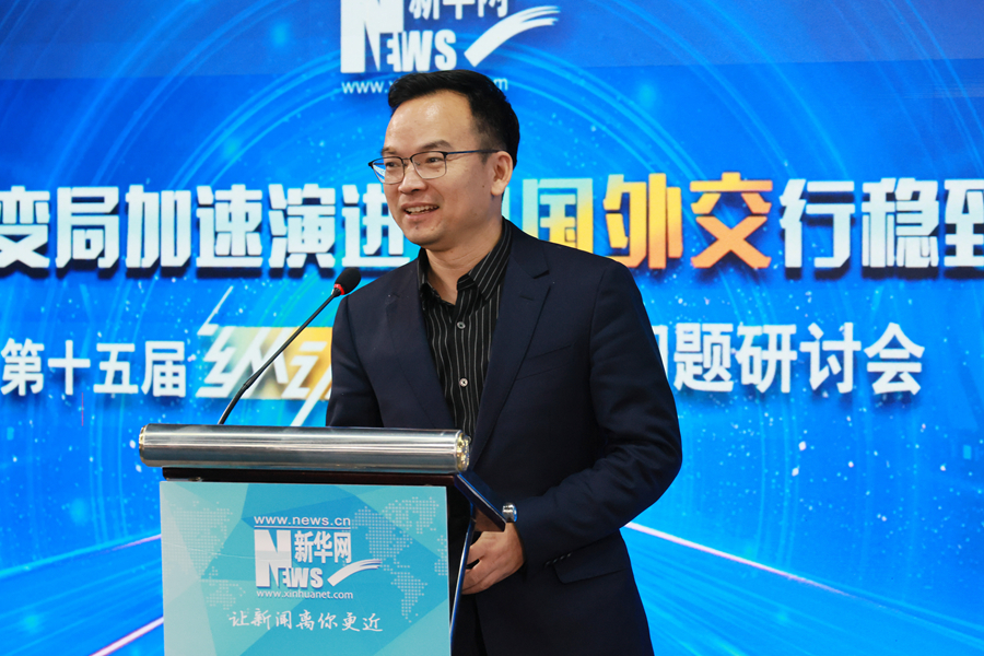 1月2日,新华网第十五届“纵论天下”国际问题研讨会在北京新华网总部举办。图为中国社会科学院亚太与全球战略研究院政治室主任董向荣在进行下半场主题演讲。新华网 杨霁昕 摄