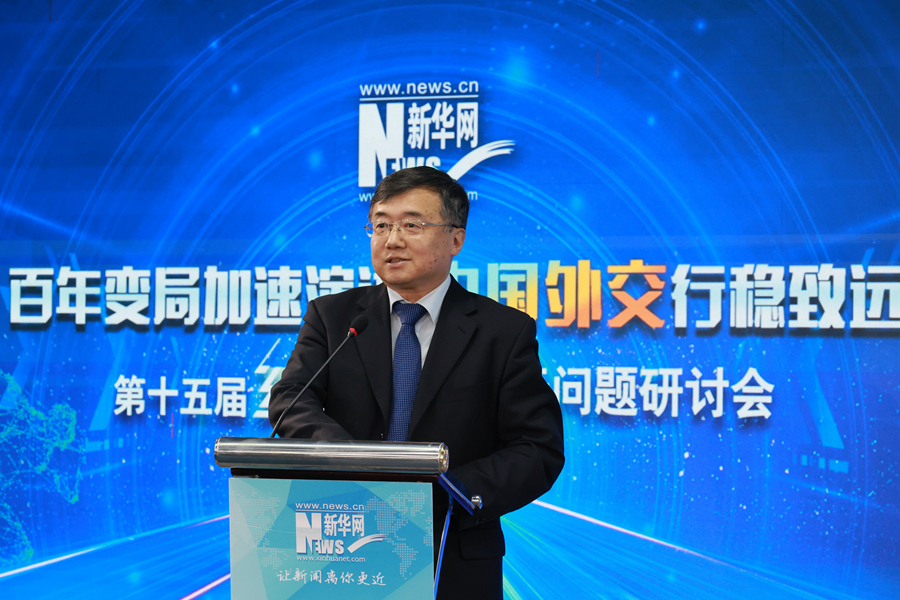 1月2日,新华网第十五届“纵论天下”国际问题研讨会在北京新华网总部举办。图为中国社会科学院俄罗斯东欧中亚研究所所长孙壮志在进行上半场主题演讲。新华网 杨霁昕 摄