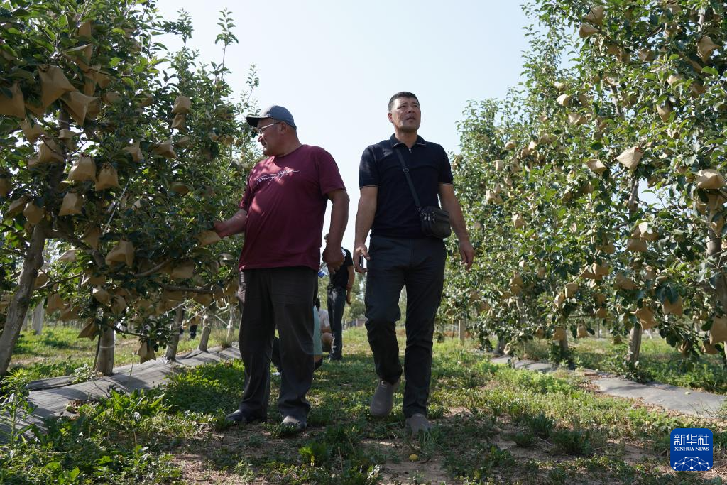 6月16日,培训班学员在位于陕西省渭南市白水县的西北农林科技大学苹果试验站参观果园。