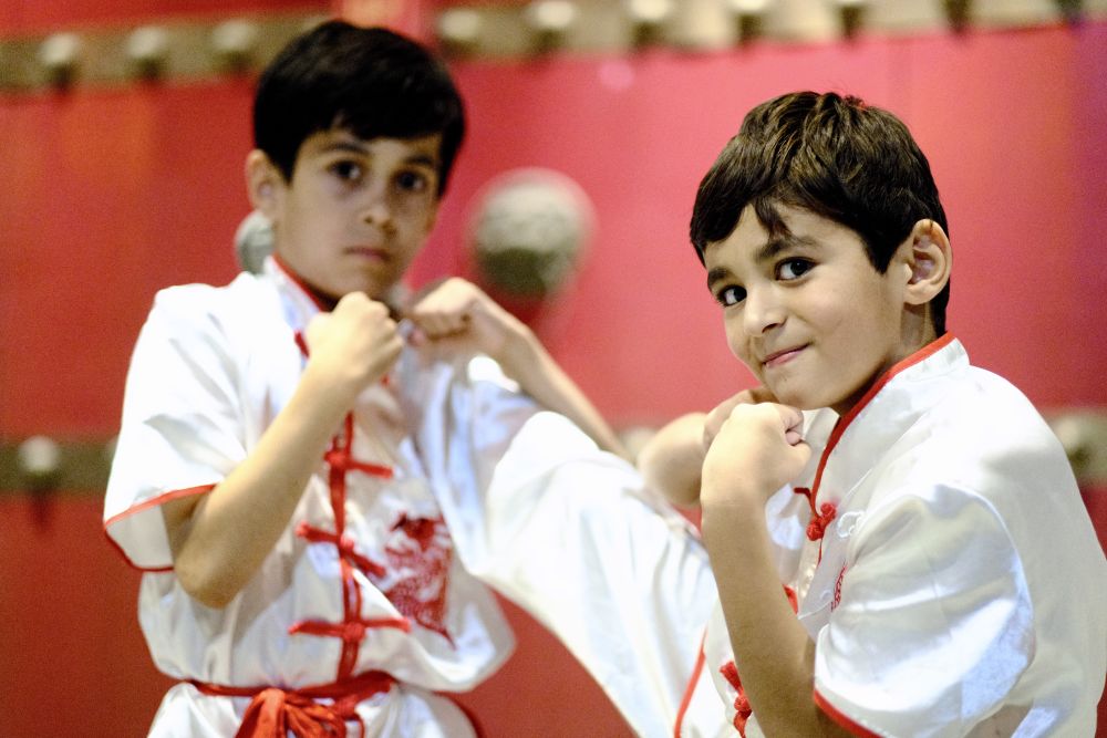 2024年6月11日,在塔吉克斯坦首都杜尚别,爱好中国武术的当地儿童参加塔吉克斯坦民族大学孔子学院的武术表演排练。新华社记者 郑开君 摄