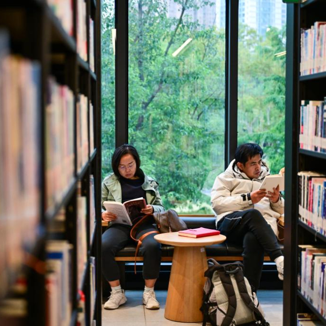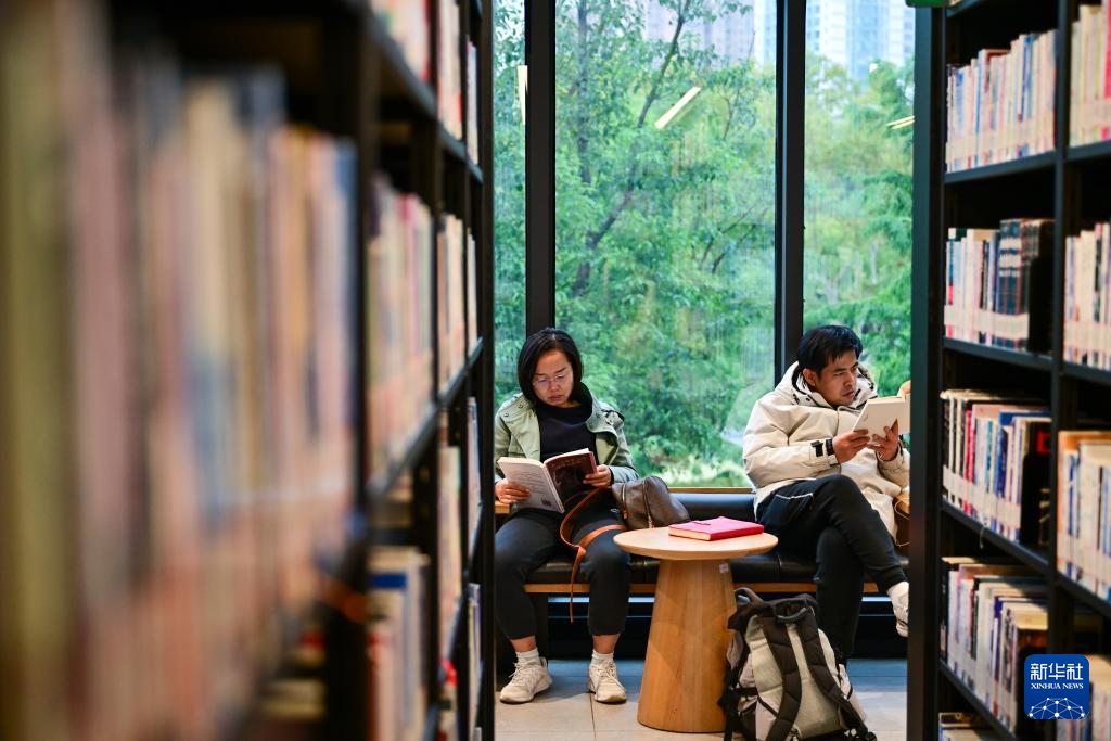 11月9日,小朋友在上海市虹口区和平书院一间榻榻米阅读室内看书。
