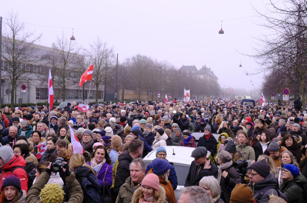 1月17日,人们在位于丹麦首都哥本哈根的美国驻丹麦大使馆外参加游行示威。新华社发(刘智超摄)