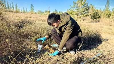 早在4月底草剛綠時,26歲的北京林業(yè)大學(xué)水土保持學(xué)院博士生農(nóng)皓鈞就來到這里,開始又一次長達(dá)半年的野外科研觀測。作為學(xué)院荒漠土壤動物研究方向唯一的學(xué)生,他的科研日常是——抓蟲子。