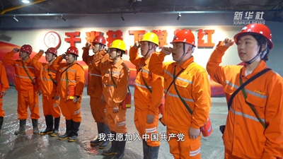“我志愿加入中國共產(chǎn)黨,擁護(hù)黨的綱領(lǐng),遵守黨的章程……”6月30日,在銅陵有色金屬集團(tuán)股份有限公司冬瓜山銅礦負(fù)930米中段的黨建文化陣地,9名新黨員在支部書記的帶領(lǐng)下莊嚴(yán)宣誓。