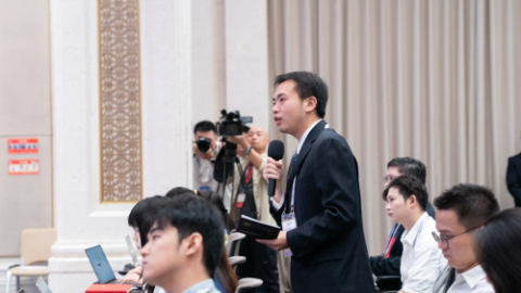 发布会现场媒体记者举手提问