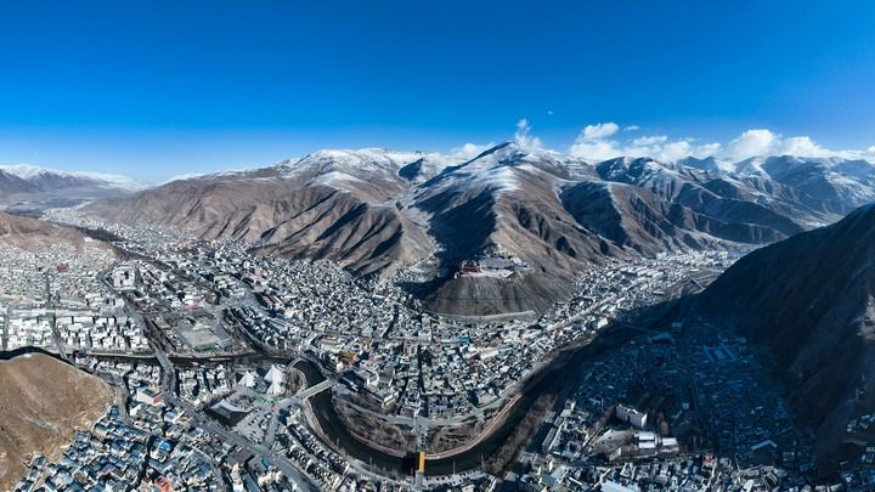 從空中俯瞰,在群山環(huán)繞之下,青海省玉樹(shù)藏族自治州玉樹(shù)市密集的建筑在山谷中拔地而起,巴塘河宛如翡翠玉帶穿城而過(guò)。從長(zhǎng)江源頭奔涌而下的水流在這里形成一大片濕地,玉樹(shù)市仿佛是一座鑲嵌在濕地里的高原小城。玉樹(shù)市位于青藏高原腹地,平均海拔超過(guò)4000米,沒(méi)有來(lái)過(guò)這里的人心態(tài)首先便是對(duì)高海拔的恐懼,但真正走入這座城市,會(huì)發(fā)覺(jué)仿佛進(jìn)入江南之地。